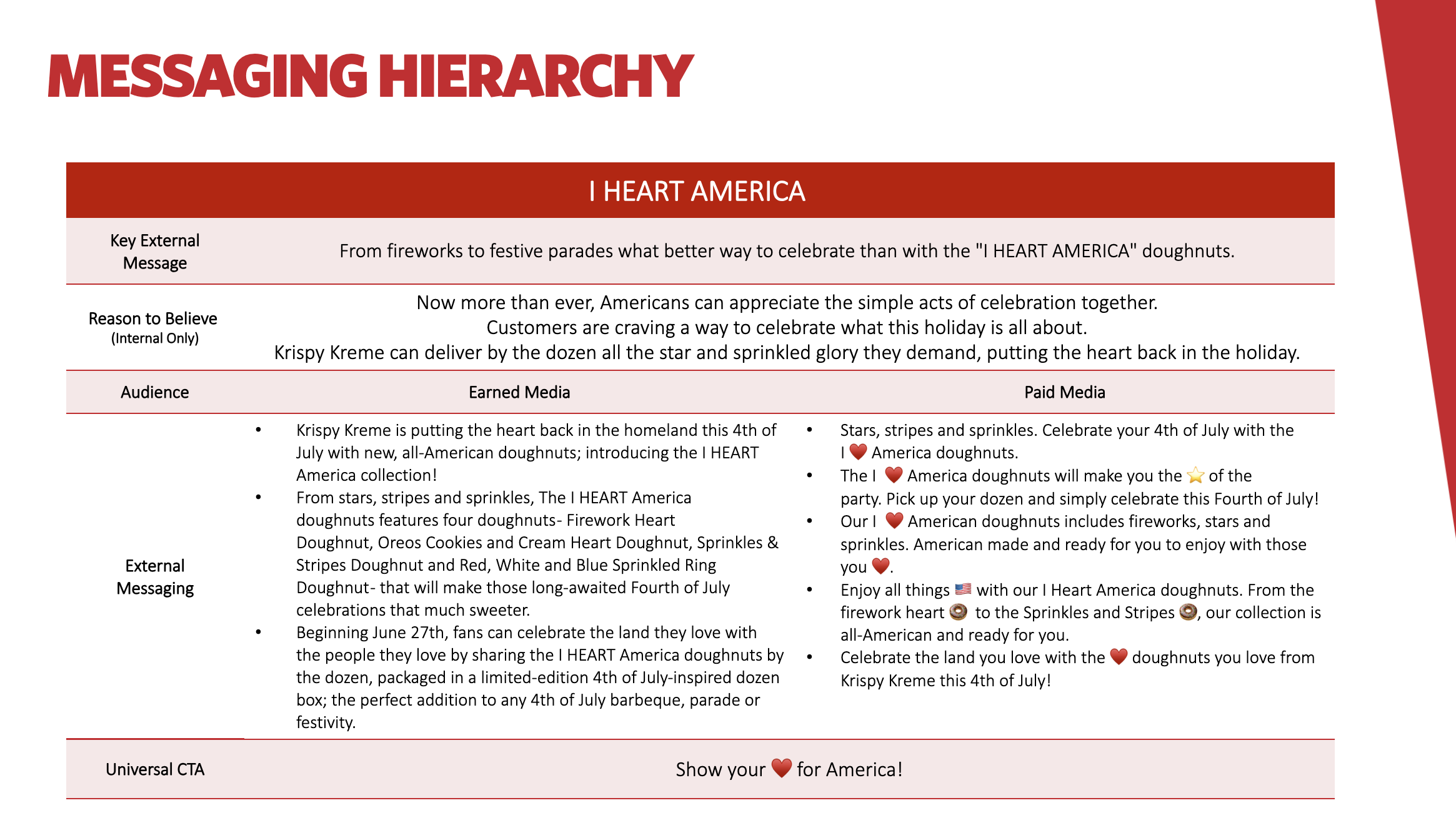 For every campaign, I was in charge of messaging breakdowns, doughnut names and descriptions, concept write-ups, storyboard descriptions, campaign copy (social awareness and eCommerce), A/B testing, and representing campaigns to clients. Below are some of those examples.